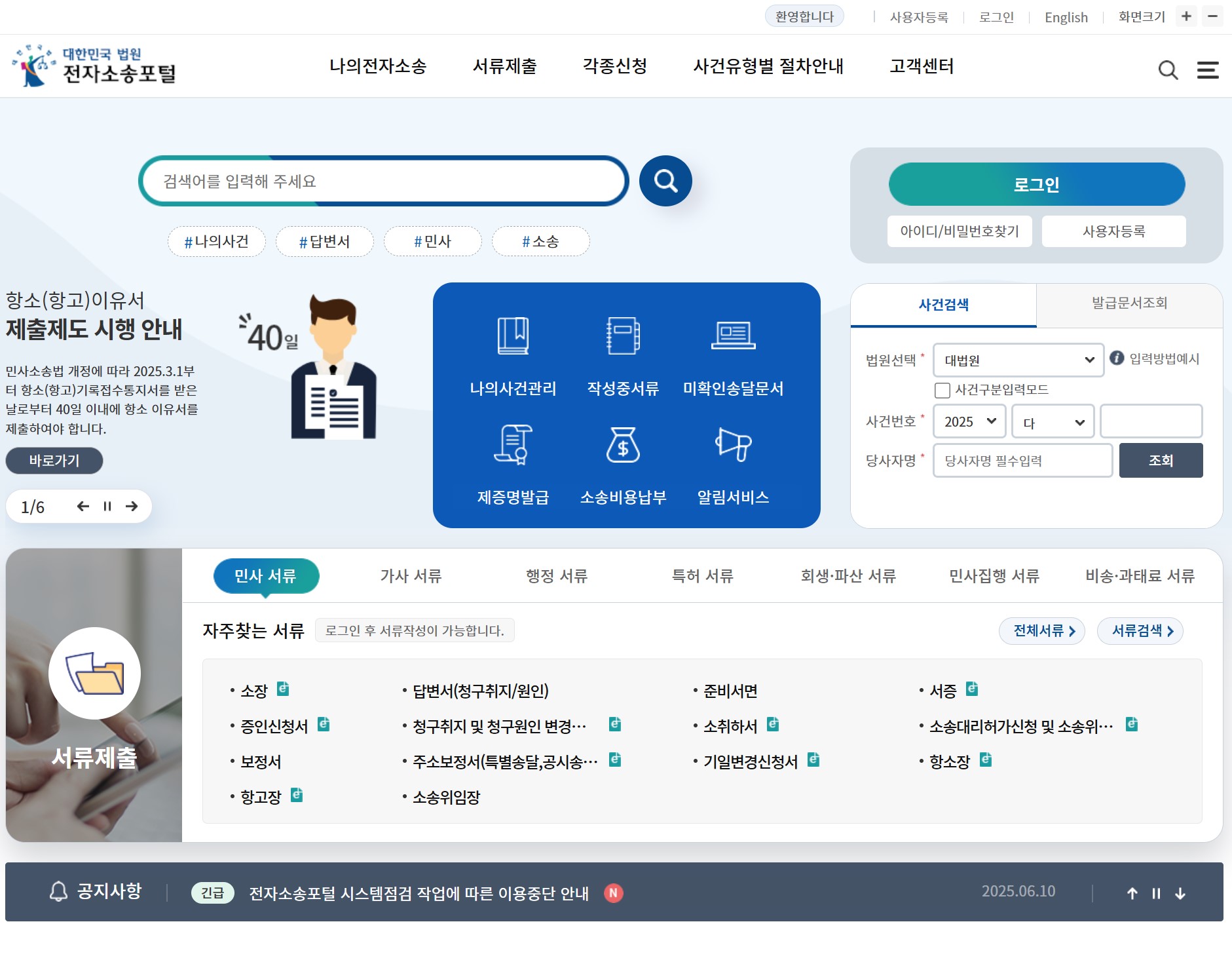 이용할 수 있는 대표적인 사이트는 대한민국 전자소송 사이트대한민국 법원 전자민원센터가 있습니다.