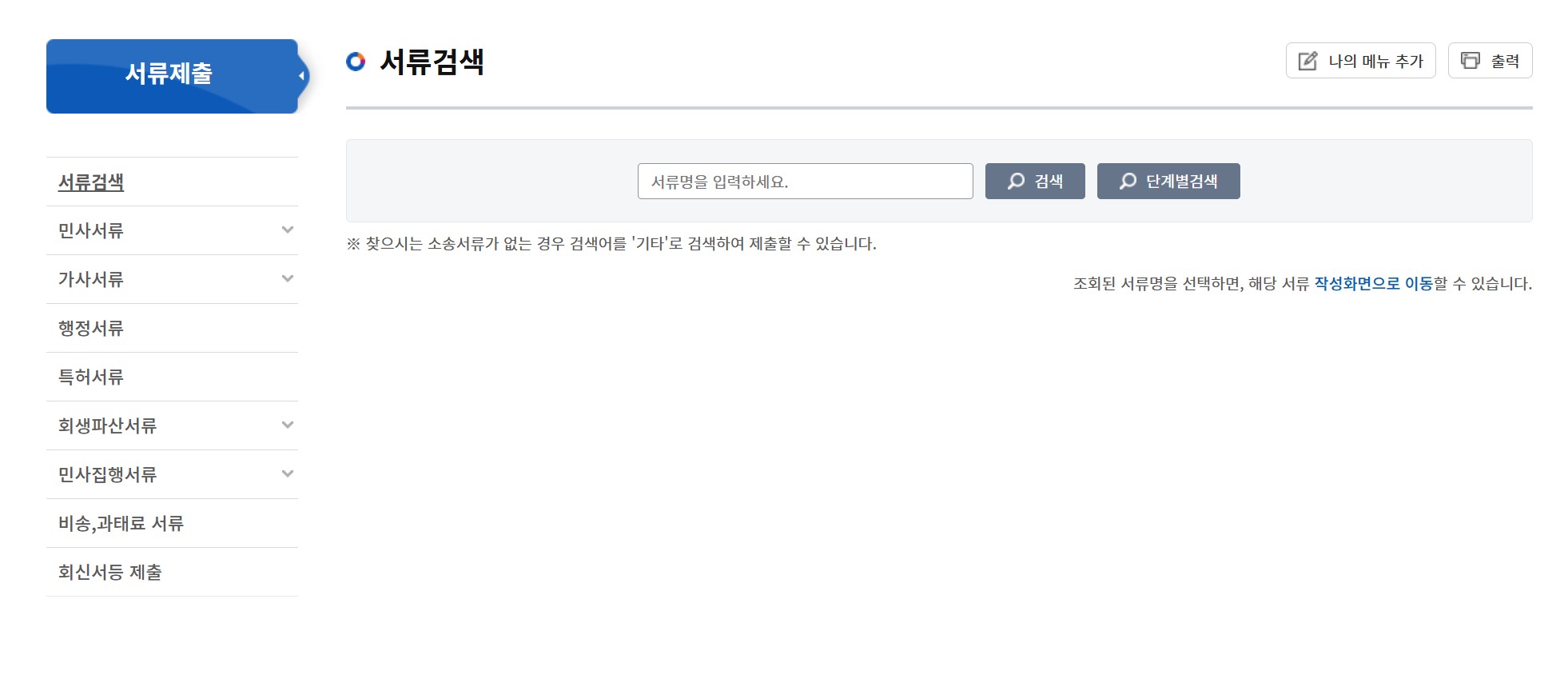 - 상단 메뉴에서 사건검색 선택