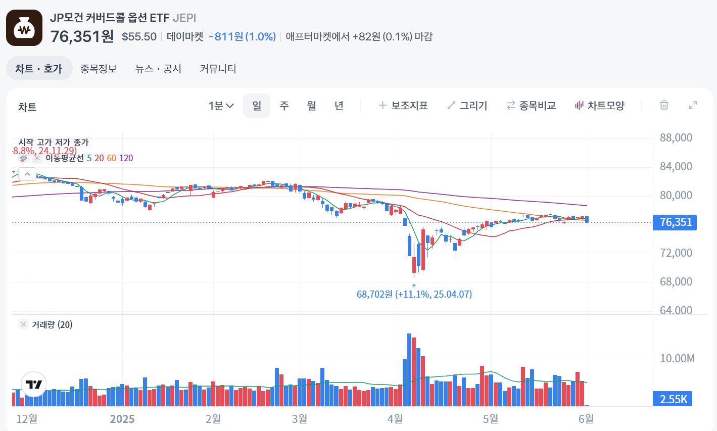 | JEPI | 약 6% | 약 2,000만 원 |