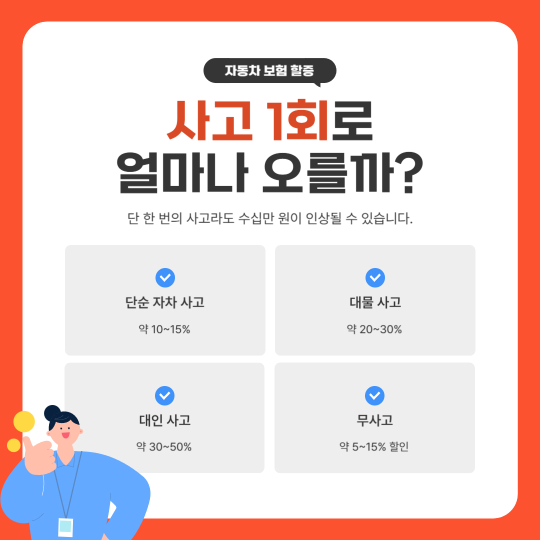 사고의 책임 비율, 피해 금액, 상대방 유무 등에 따라 할증률은 크게 달라질 수 있습니다.