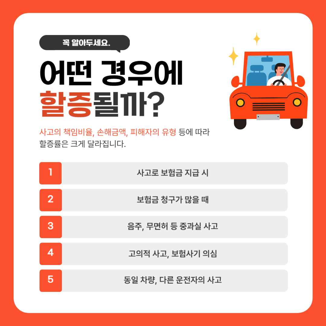 즉, 사고 없이 안전하게 운전하면 보험료가 할인되고, 사고 이력이 있으면 보험료가 할증되는 구조입니다.