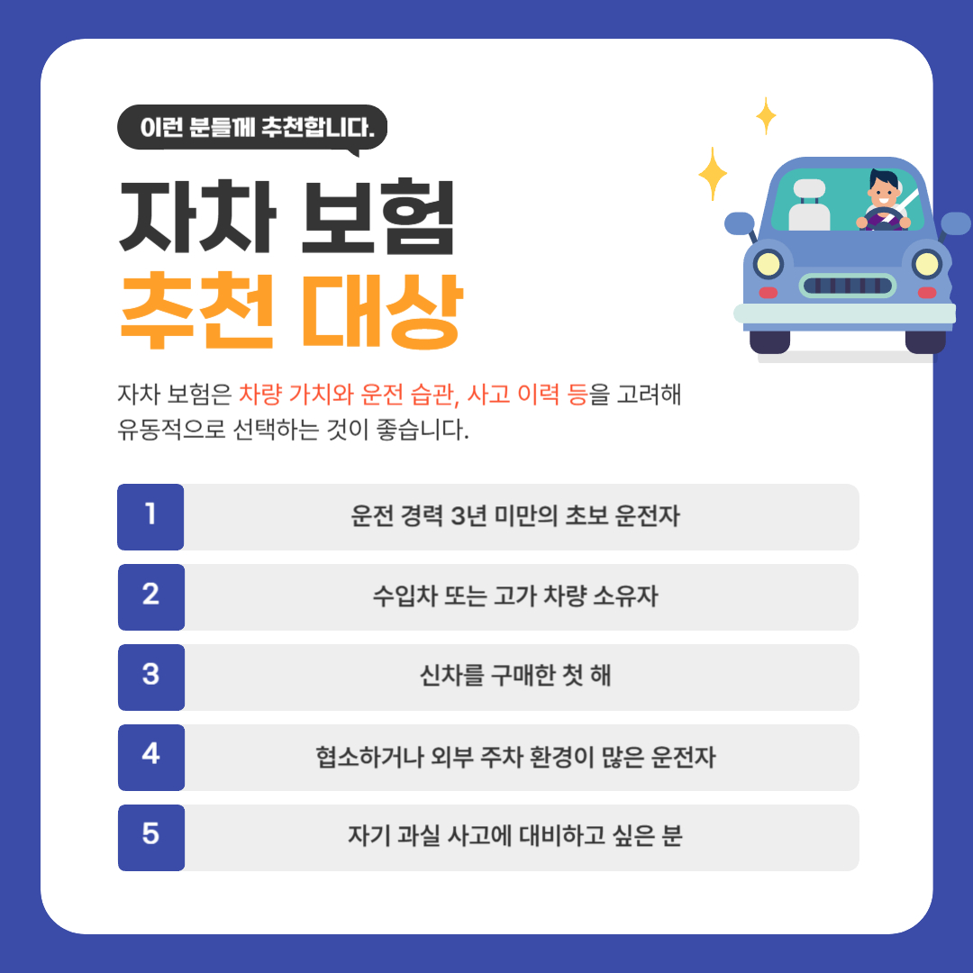 즉, 차량 가치와 운전 습관, 사고 이력 등을 고려해 유동적으로 선택하는 것이 좋습니다.