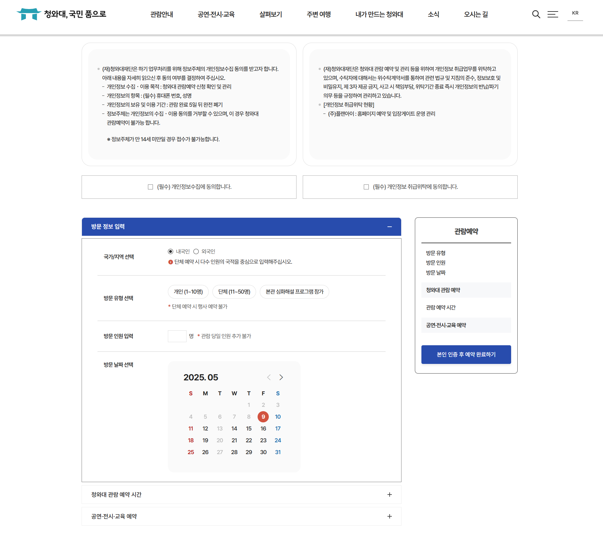 청와대 관람은 사전 예약을 통해 진행됩니다. 예약은 공식 홈페이지에서 가능하며, 예약 절차는 다음과 같습니다