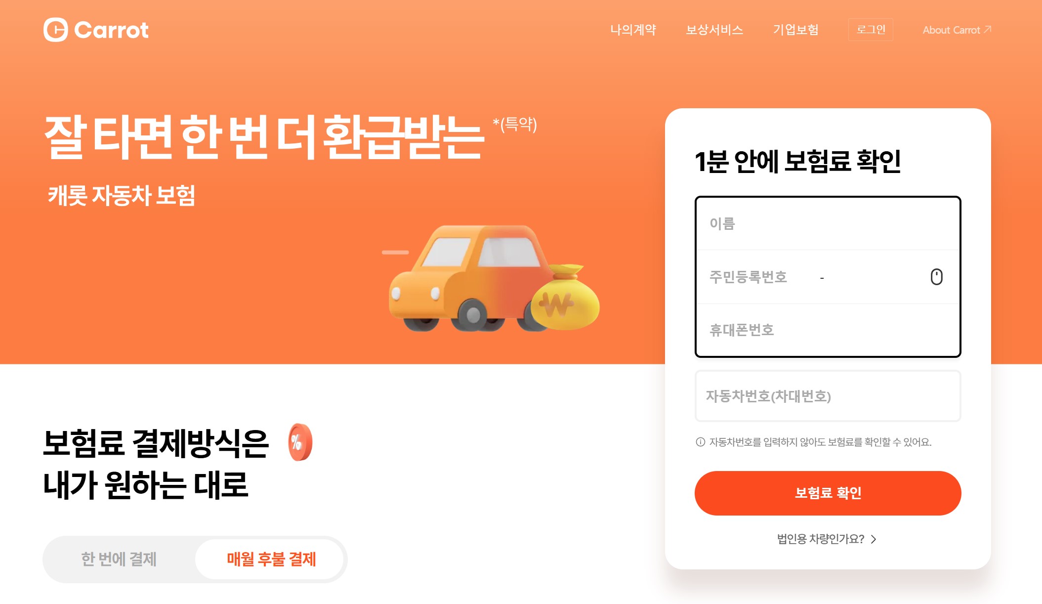 바로 캐롯 퍼마일 자동차 보험이야. 😊