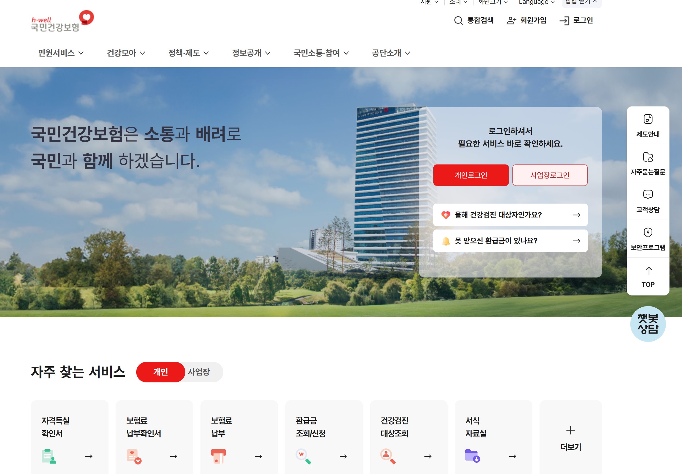 1. 국민건강보험공단 홈페이지를 통한 조회