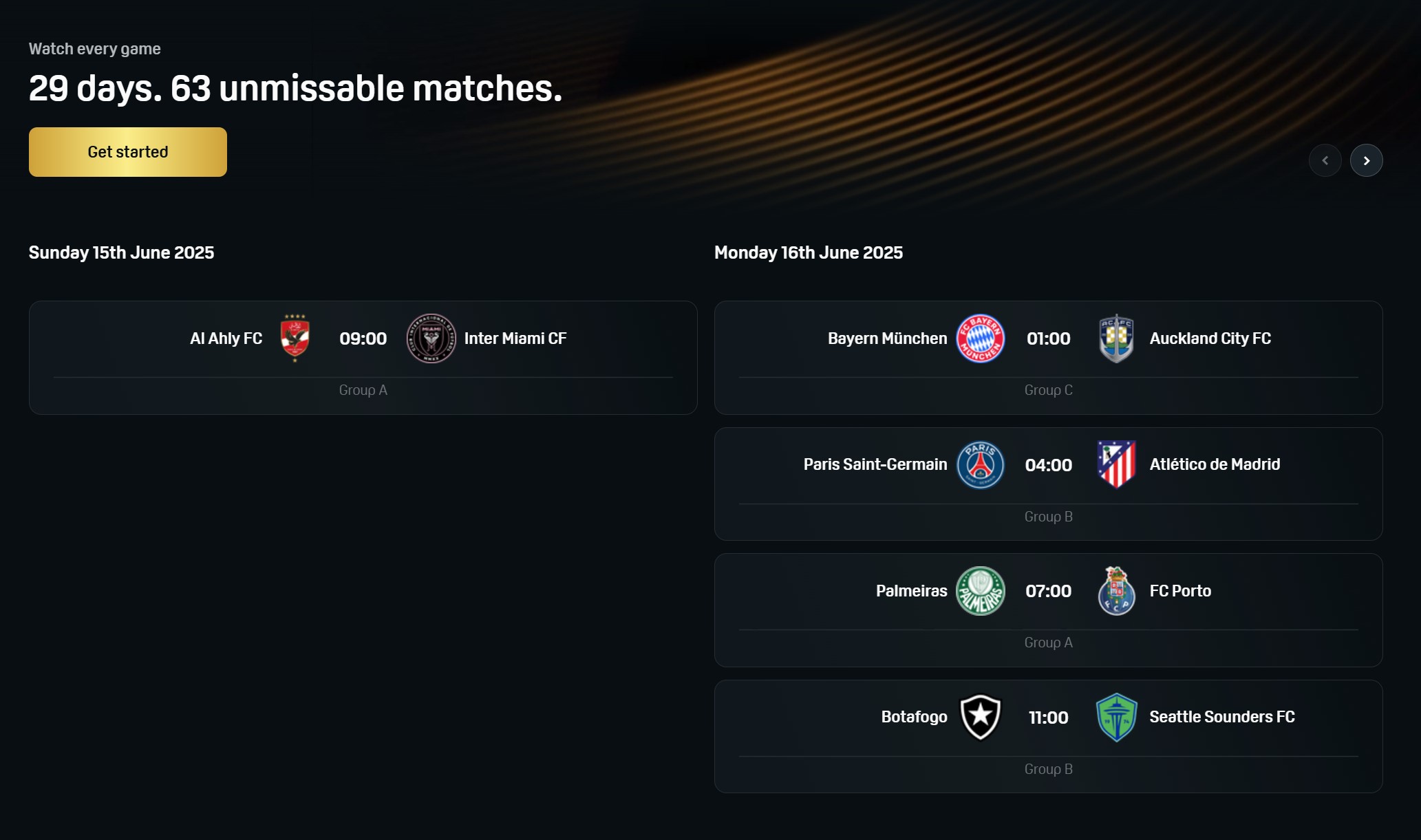 2025 클럽 월드컵의 열기를 놓치지 마세요! DAZN 또는 쿠팡플레이에서 계정을 만들고, 경기 일정을 확인해 좋아하는 팀의 경기를 실시간으로 즐기세요. 아래 버튼을 클릭해 지금 바로 시작하세요!