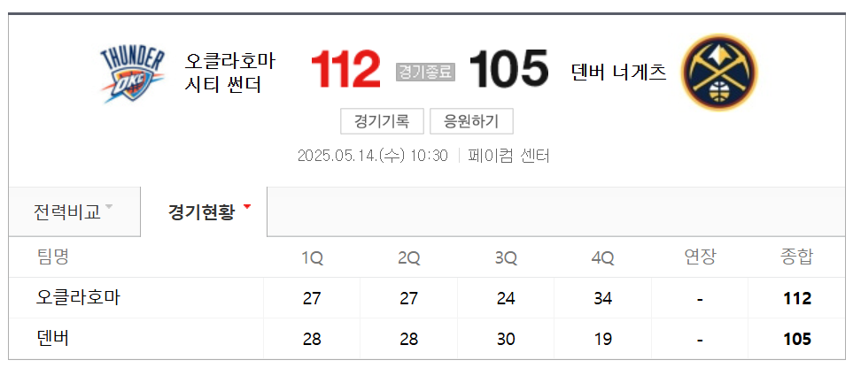 - 스코어: OKC 112, 덴버 105