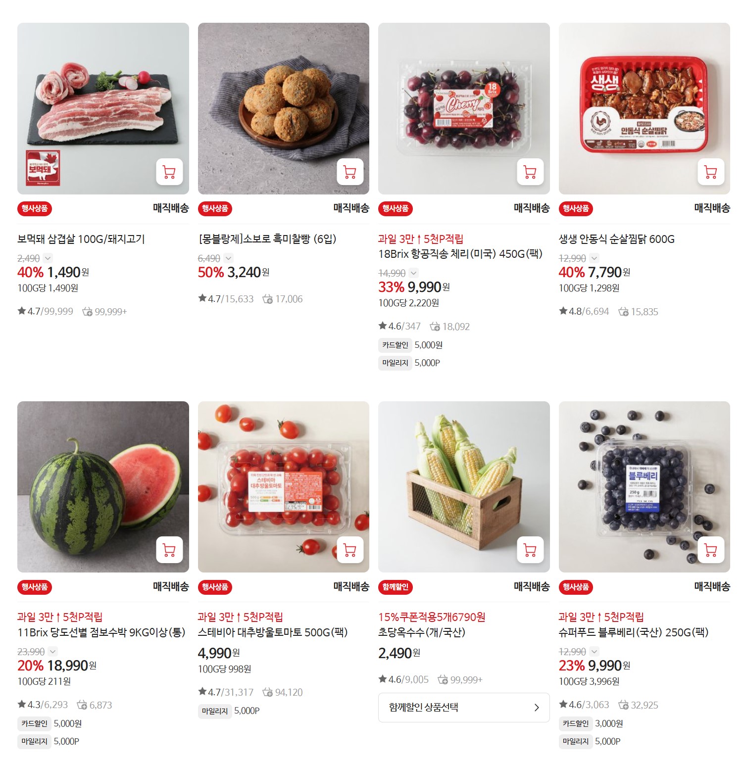 - 국내산 삼겹살 100g당 1,980원 (1인 2팩 한정)